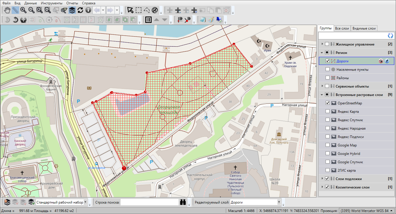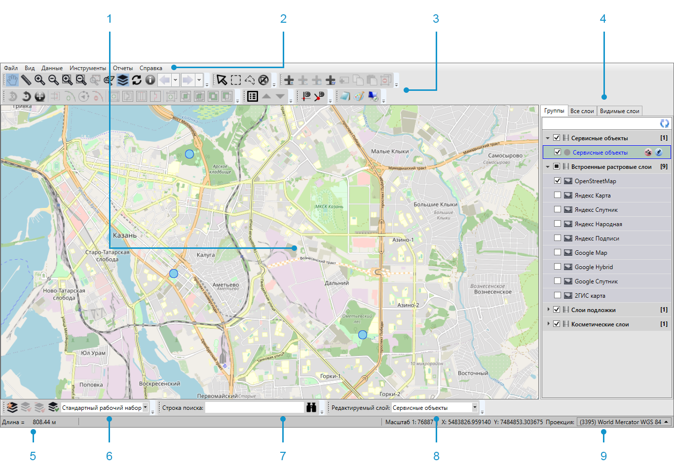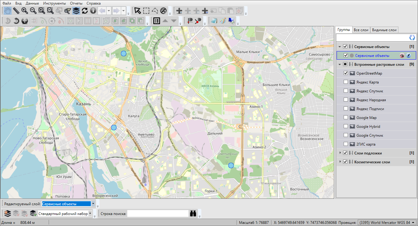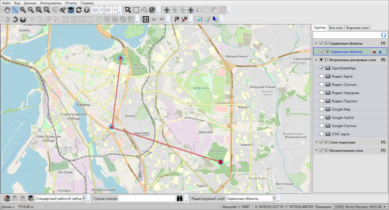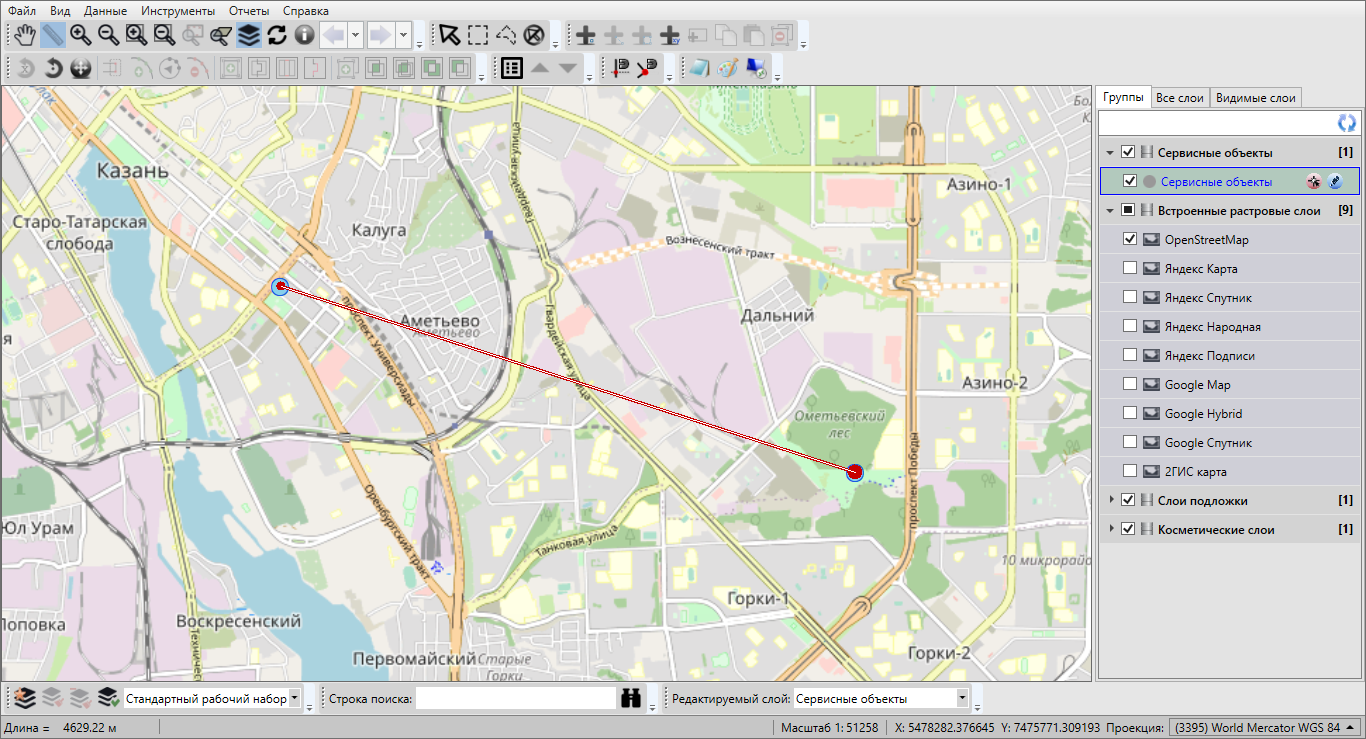 — «Измерение расстояний» (измерение расстояния между двумя и более объектами на карте, измерение площадей полигональных объектов);