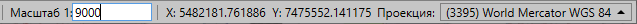 Панель текущих координат предназначена для просмотра текущих координат курсора в выбранной проекции и масштаба карты. В масштабном окне также можно самостоятельно задавать масштаб карты (Рис. 2.10).