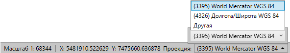 Для просмотра координат курсора можно выбрать картографическую проекцию из выпадающего списка поля «Проекция» (Рис. 2.11).