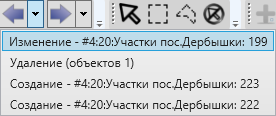 Панель станет активной после выбора на карте объектов тематического или косметического слоя (с помощью кнопок панели инструментов «Выбор объектов»). Для линейных объектов доступны все кнопки панели инструментов «Операции с геометрией», за исключением кнопки «Симметрическая разность геометрий». Для полигональных объектов доступны все кнопки панели инструментов «Операции с геометрией», за исключением кнопки «Копирование участка линии». Для точечных (мультиточечных) объектов доступными являются кнопки «Перемещение объектов», «Группировка геометрий», «Разгруппировка геометрии», «Пересечение геометрий», «Объединение пересекаемых геометрий», «Симметрическая разность геометрий», «Обрезание геометрии полигоном», «Обрезание геометрии указанием точек». Действие кнопок панели подробно описано в разделе Редактирование геометрии объекта на карте.