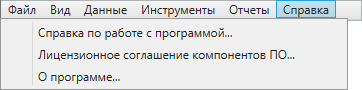 В верхней части главного окна Программы расположено меню (Рис. 2.26), которое содержит разделы «Файл», «Вид», «Данные», «Инструменты», «Отчеты», «Справка». Раздел «Отчеты» отображается при наличии в Программе отчетов по таблицам данных.