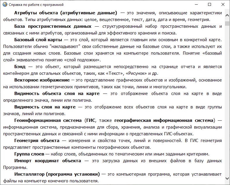 «Справка по работе с программой»,