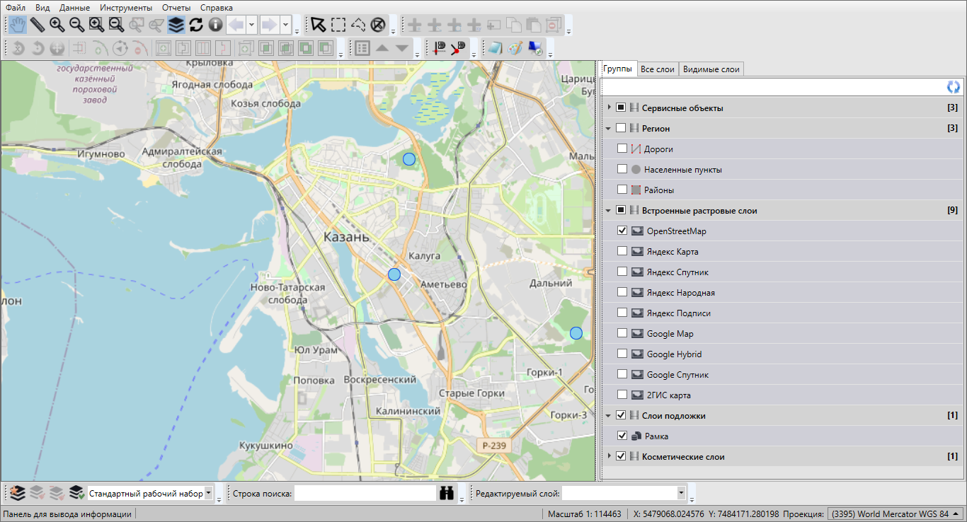 объектов данного слоя на карте с помощью кнопок «Выбор объектов»