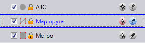 У тематических слоев, недоступных для редактирования, справа от значка типа геометрии будет расположен значок с изображением закрытого замка (Рис. 2.47). У доступных для редактирования слоев значок замка будет отсутствовать.