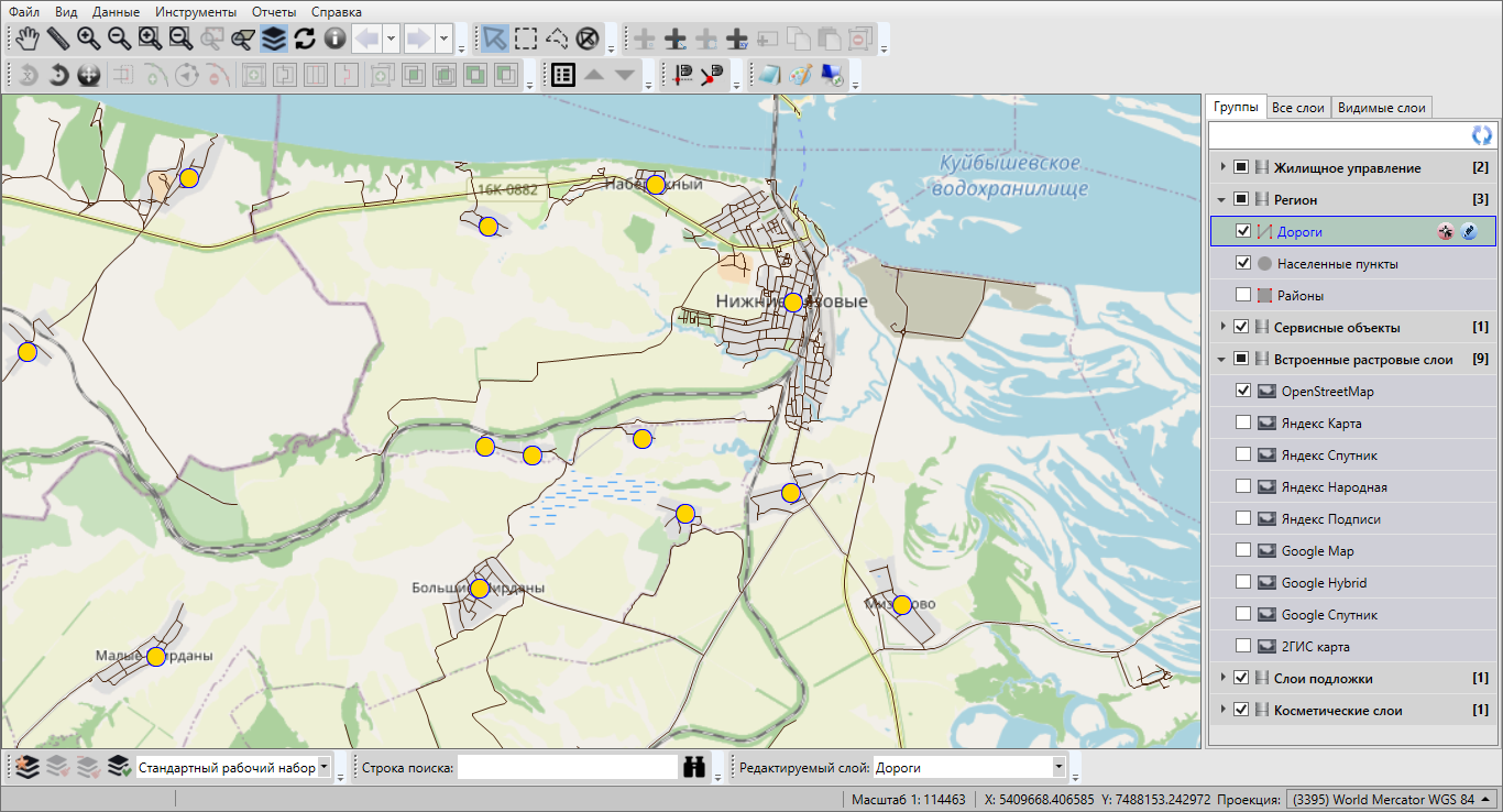 Рис. 2.53 Отображение на карте объектов видимых слоев
