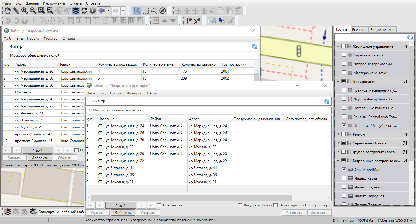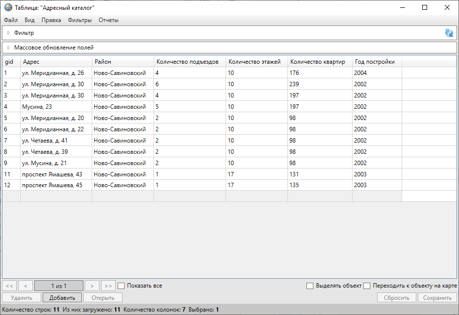 После импорта данных в слой добавятся новые объекты, которым Программа присвоит идентификационные номера. В окне «Таблица» отобразятся строки с данными импортированных объектов.
