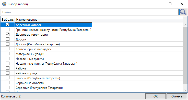 Отметить галочками таблицы для экспорта, нажать кнопку «Ok» (Рис. 2.113).