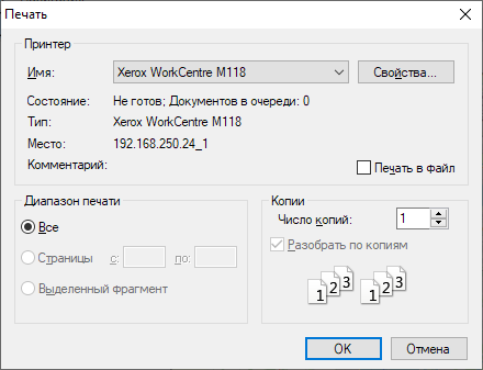 При выборе вкладки «Настройки печати…» откроется окно «Печать» (Рис. 2.102), в котором можно выбрать принтер и задать необходимые параметры печати (диапазон печати, число копий).