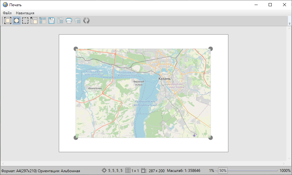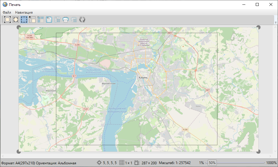 Для изменения области печати карты нужно нажать кнопку «Изменение печатаемой