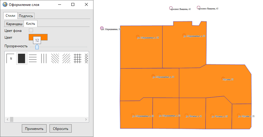 Для сохранения внесенных изменений необходимо нажать кнопку «Применить», для возврата к стандартному оформлению слоя — кнопку