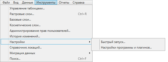 Окно «Настройки» предназначено для пользовательских настроек Программы и плагинов. Перейти к окну настроек можно через пункт «Настройки программы и плагинов…» вкладки «Настройки…» раздела меню «Инструменты» (Рис. 2.77, Рис. 2.78).