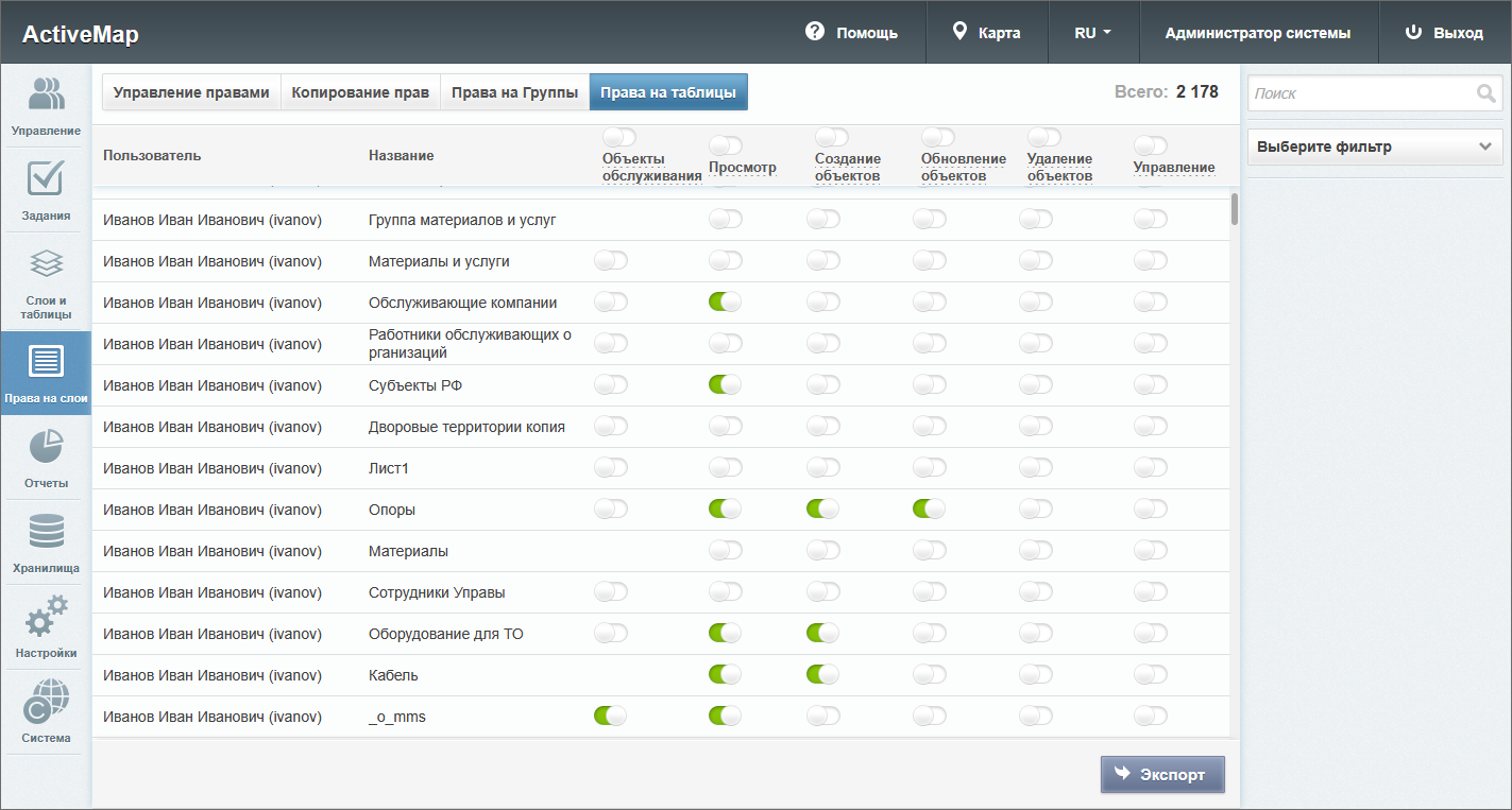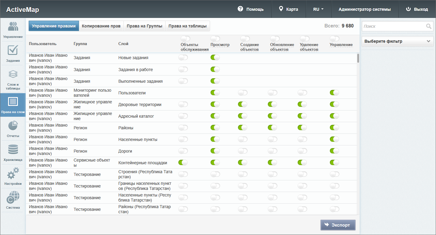 Управление правами – это предоставление пользователям прав, необходимых для доступа к слоям и таблицам системы.