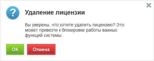 Для прекращения действия лицензии на данном сервере администратору необходимо нажать