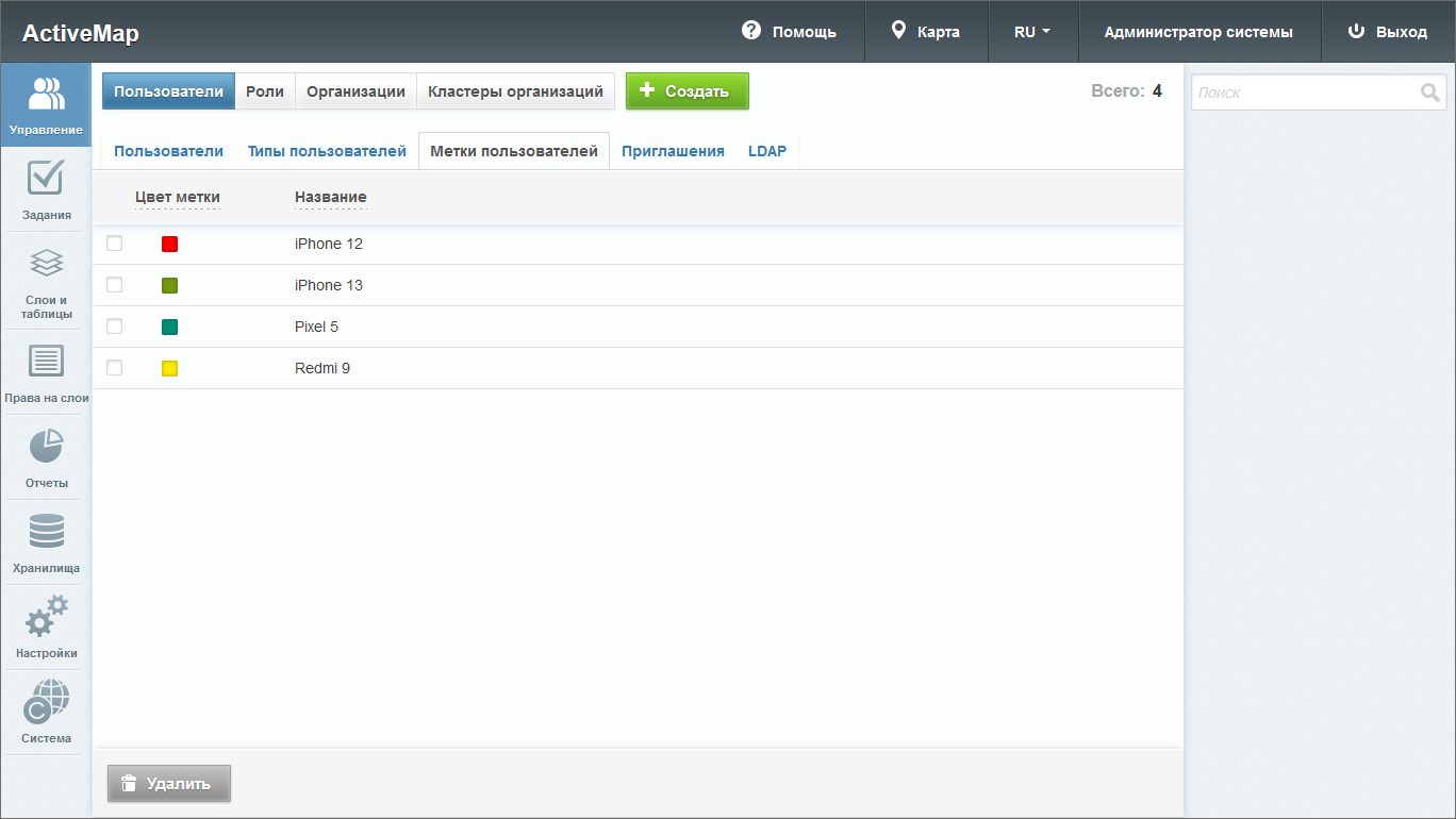 В системе «ActiveMap» существует несколько предустановленных ролей пользователей: