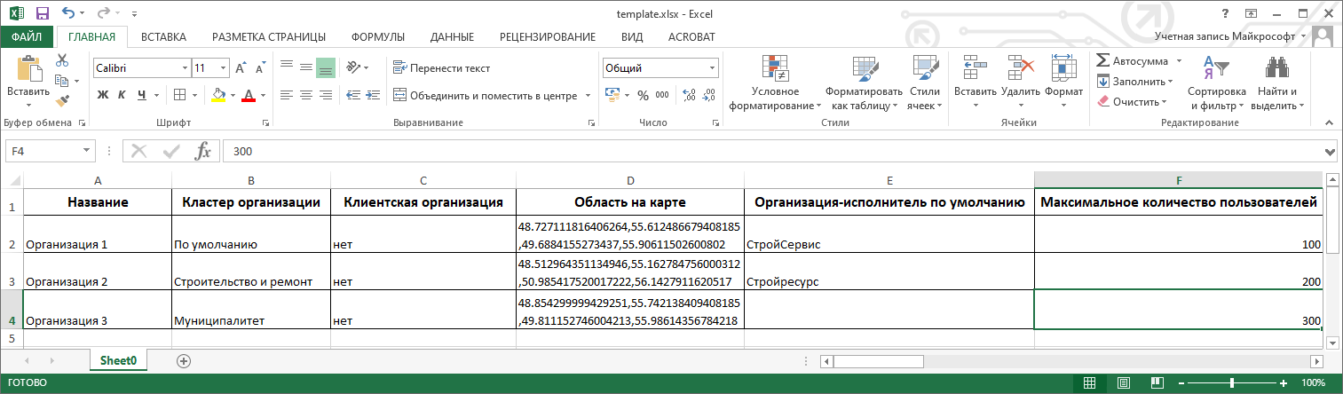 Рис. 2.71 Пример Excel-файла с импортируемыми организациями