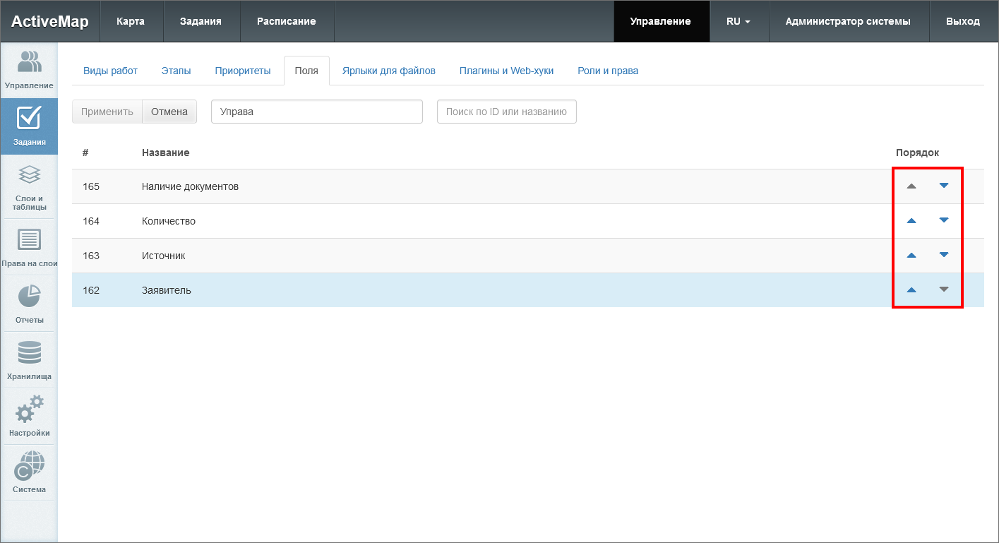 и нажать «Применить» (Рис. 2.92). Внутри группы поля будут отсортированы по полю «Порядок». Если в задании есть и глобальные, и локальные поля, то сначала будут отображены глобальные поля, а затем локальные в порядке, заданном в системе.
