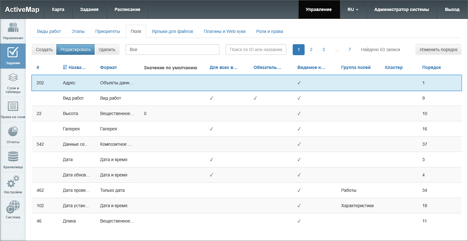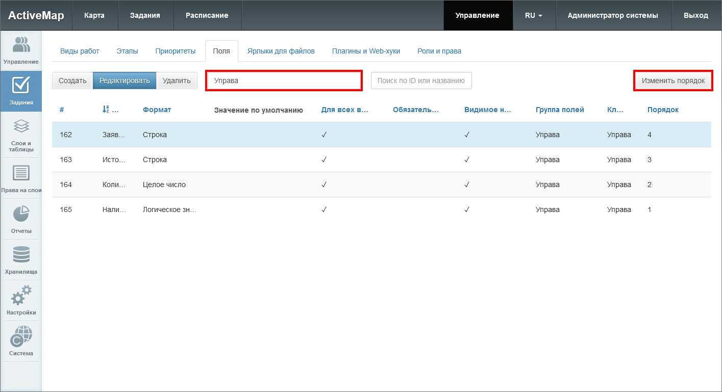 и нажать «Применить» (Рис. 2.103). Внутри группы поля будут отсортированы по полю «Порядок». Если в задании есть и глобальные, и локальные поля, то сначала будут отображены глобальные поля, а затем локальные в порядке, заданном в системе.