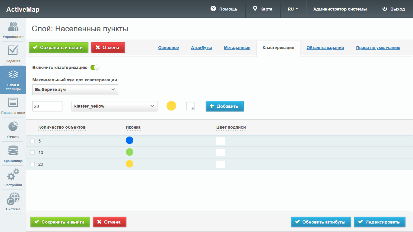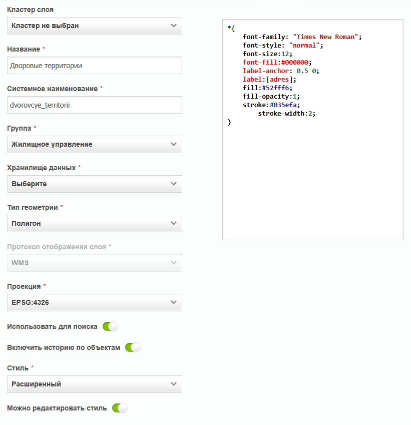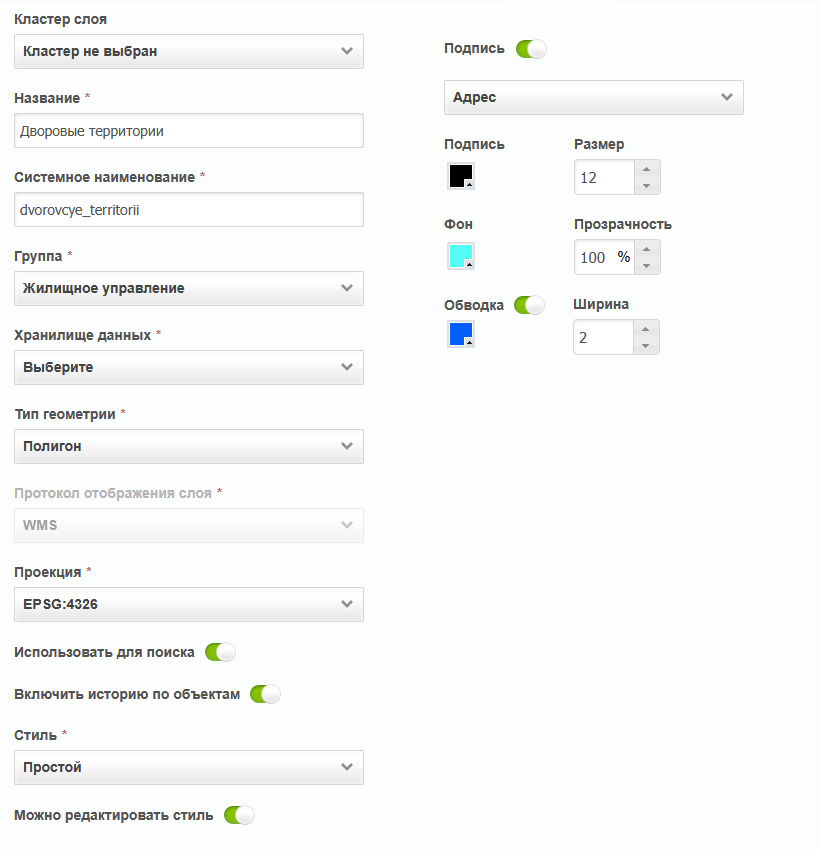 «Кластер слоя» – принадлежность слоя к кластеру организаций. Выбор кластера доступен при создании слоя под ролью администратора системы. При создании слоя под администратором кластера принадлежность к кластеру будет определена автоматически.