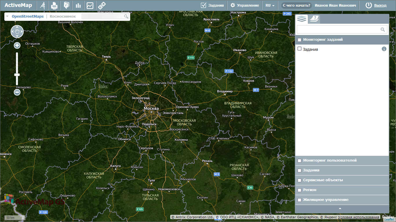 В Программе предусмотрено два типа картографической подложки: карты и космические снимки (Рис. 2.5).