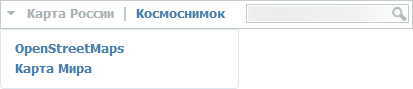 Активная подложка на панели поиска окрашена серым цветом. В левой части панели расположены названия подложек со схематическими картами, в правой – с космическими снимками. Для переключения со схематической карты на космоснимок необходимо нажать на название подложки-космоснимка (Рис. 2.6).