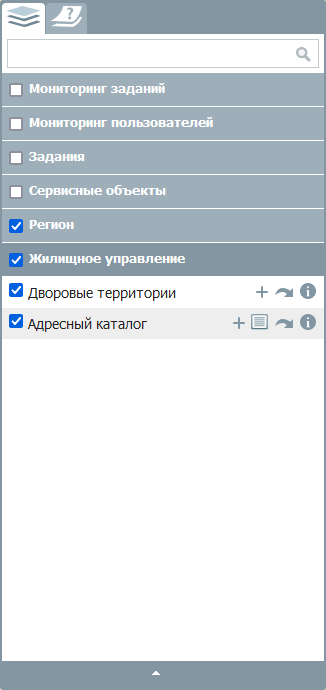На панели слоев могут присутствовать автоматически созданные системой слои. Обычно это два слоя: «Пользователи» (группа «Мониторинг пользователей») и «Задания» (группа «Мониторинг заданий»).