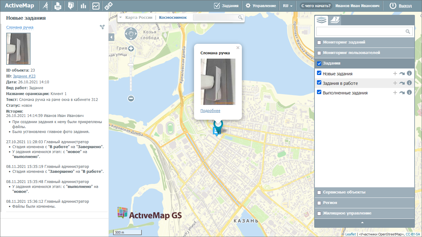 Рис. 2.33 Отображение системного слоя «Задания» на карте
