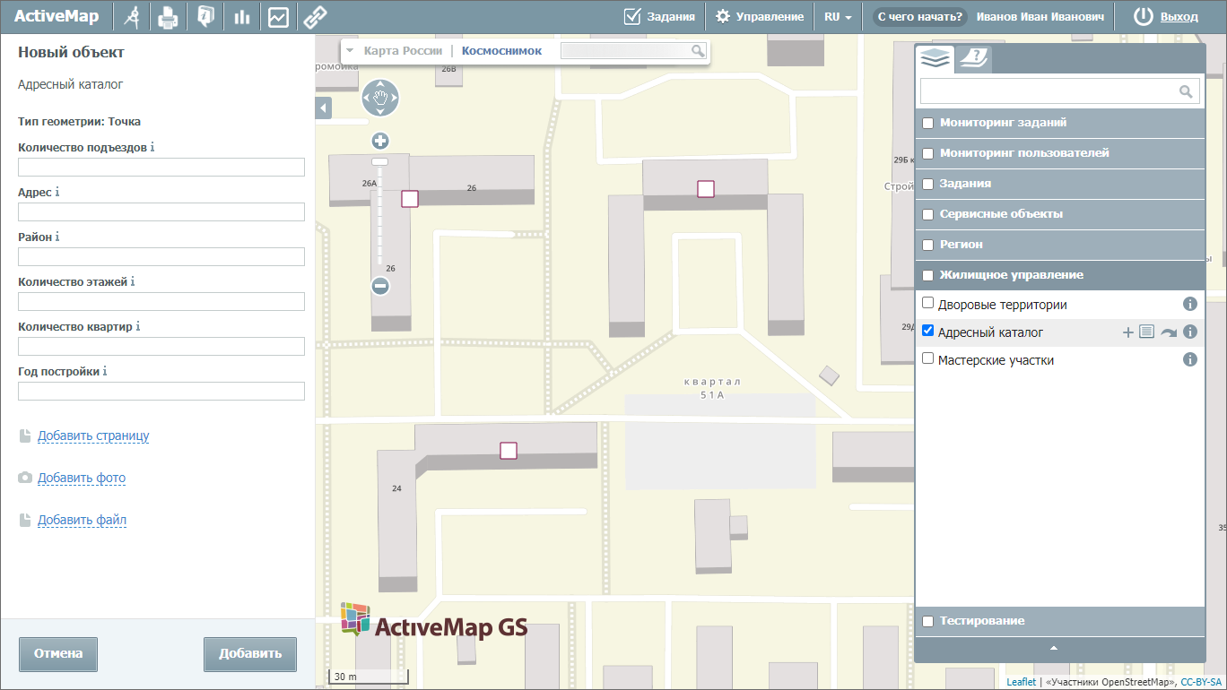 Для добавления объекта в слой карты необходимо нажать кнопку